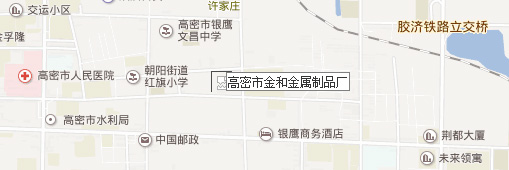 高密市金和金屬制品廠位于山東省高密市,東臨青島,西依濰坊,膠濟(jì)鐵路、濟(jì)青高速公路橫穿高密,地理?xiàng)l件優(yōu)越,交通便利。